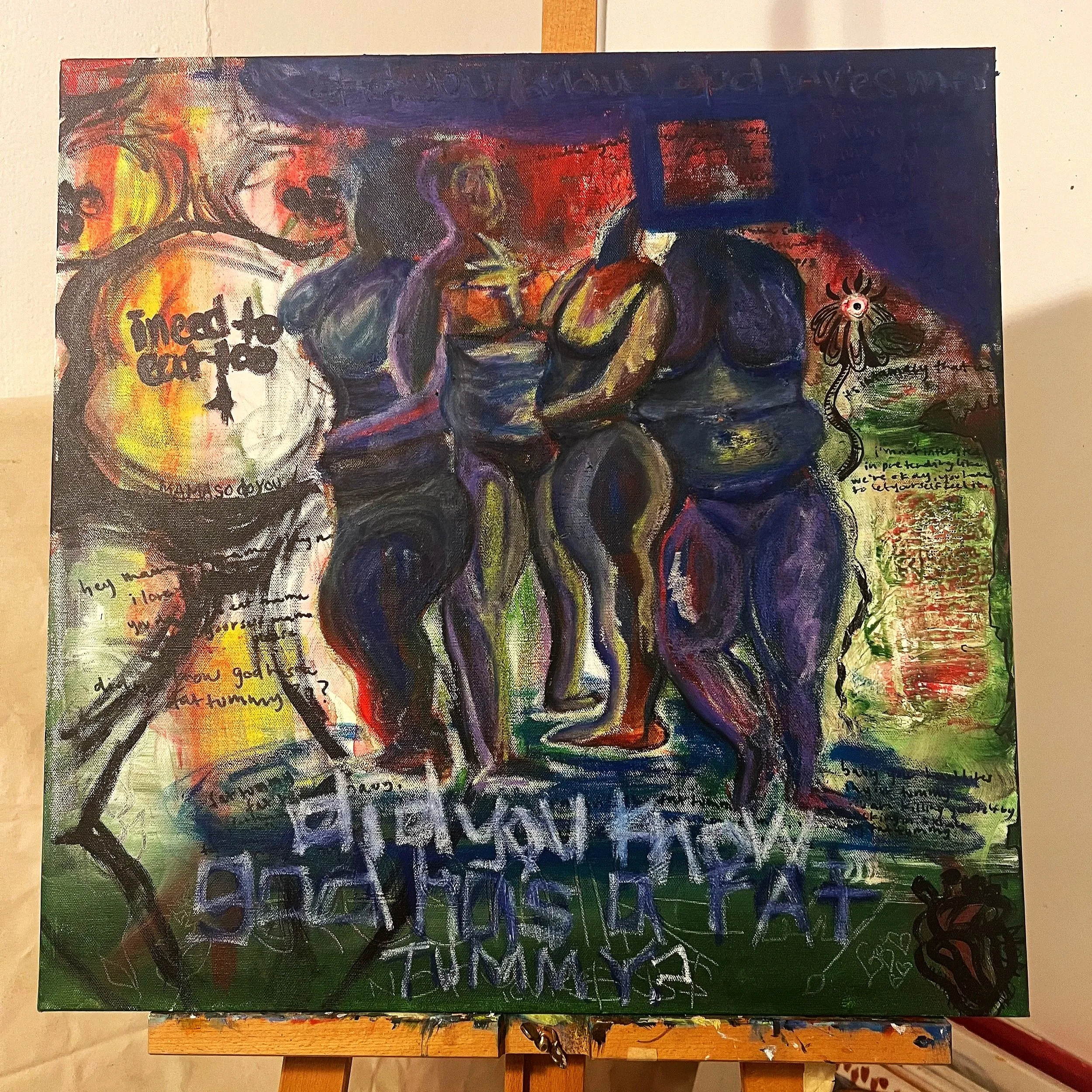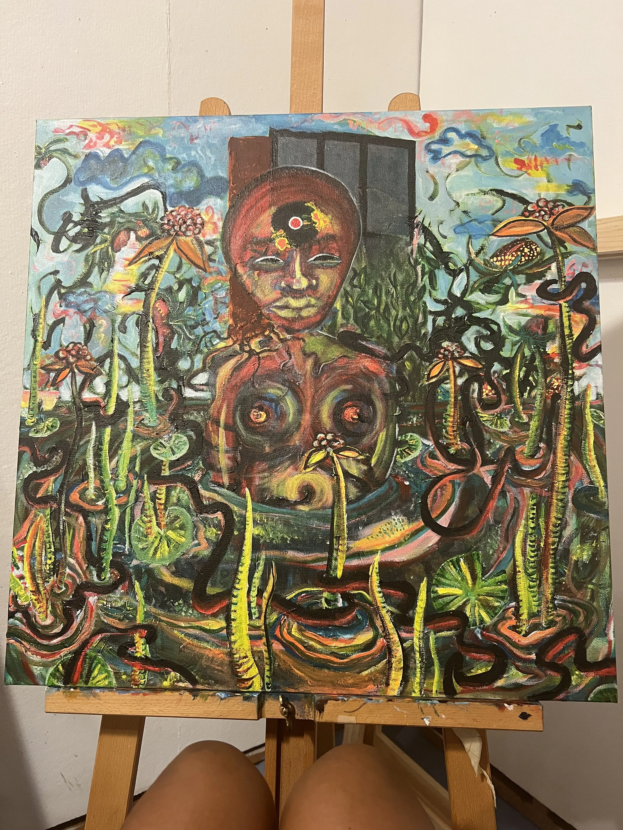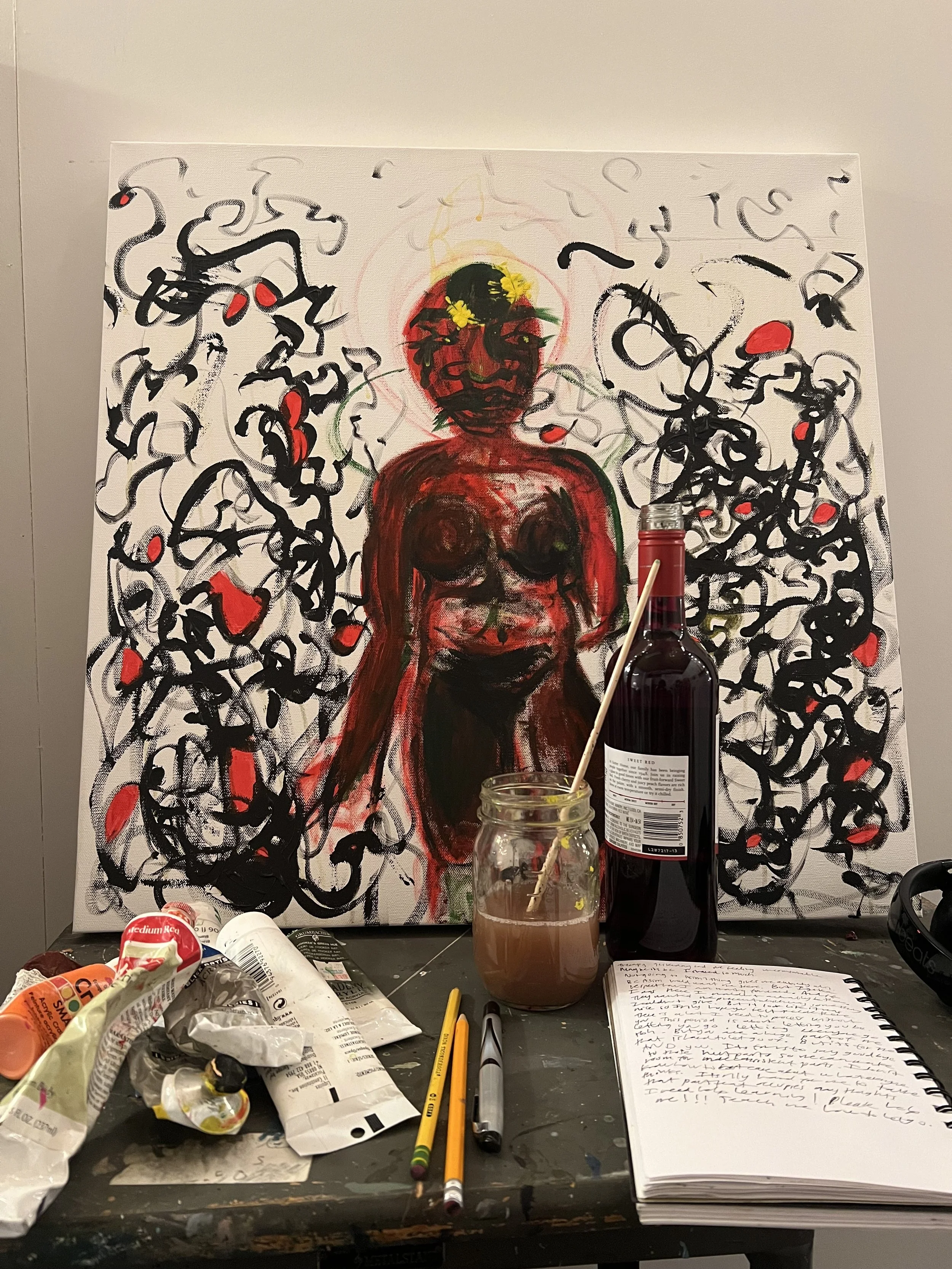 LALITA is a multimedia collage and painting, processing what it means to come from two mothers (my birth mother & my adoptive mother) who I had to detach from early on in my life.