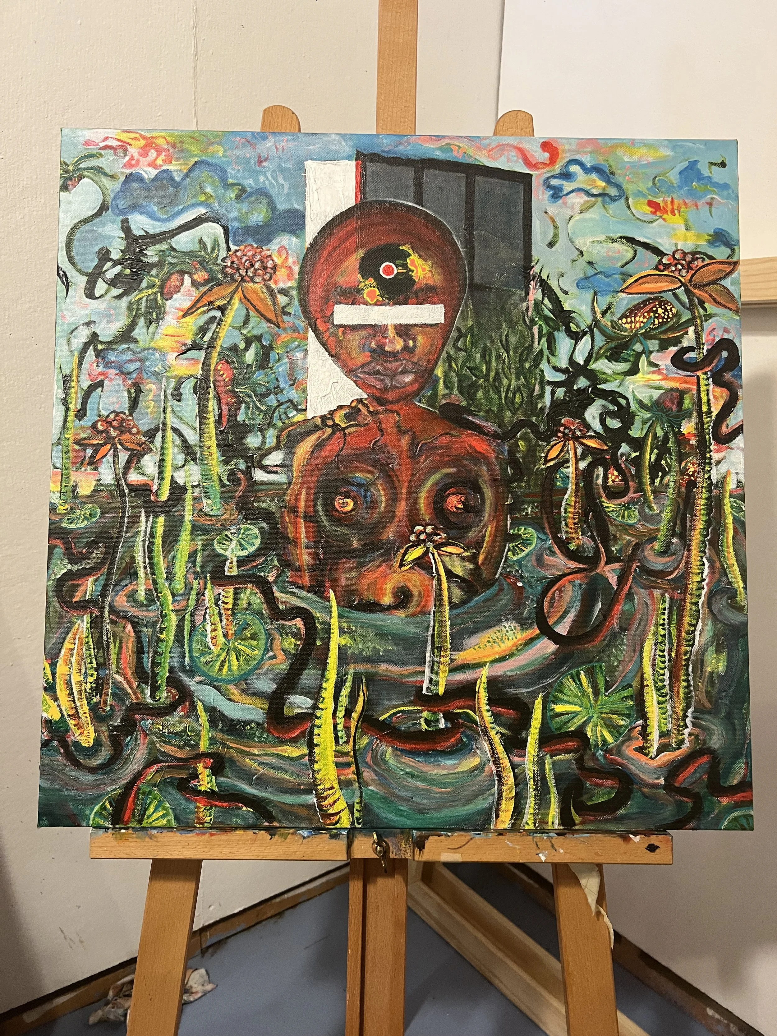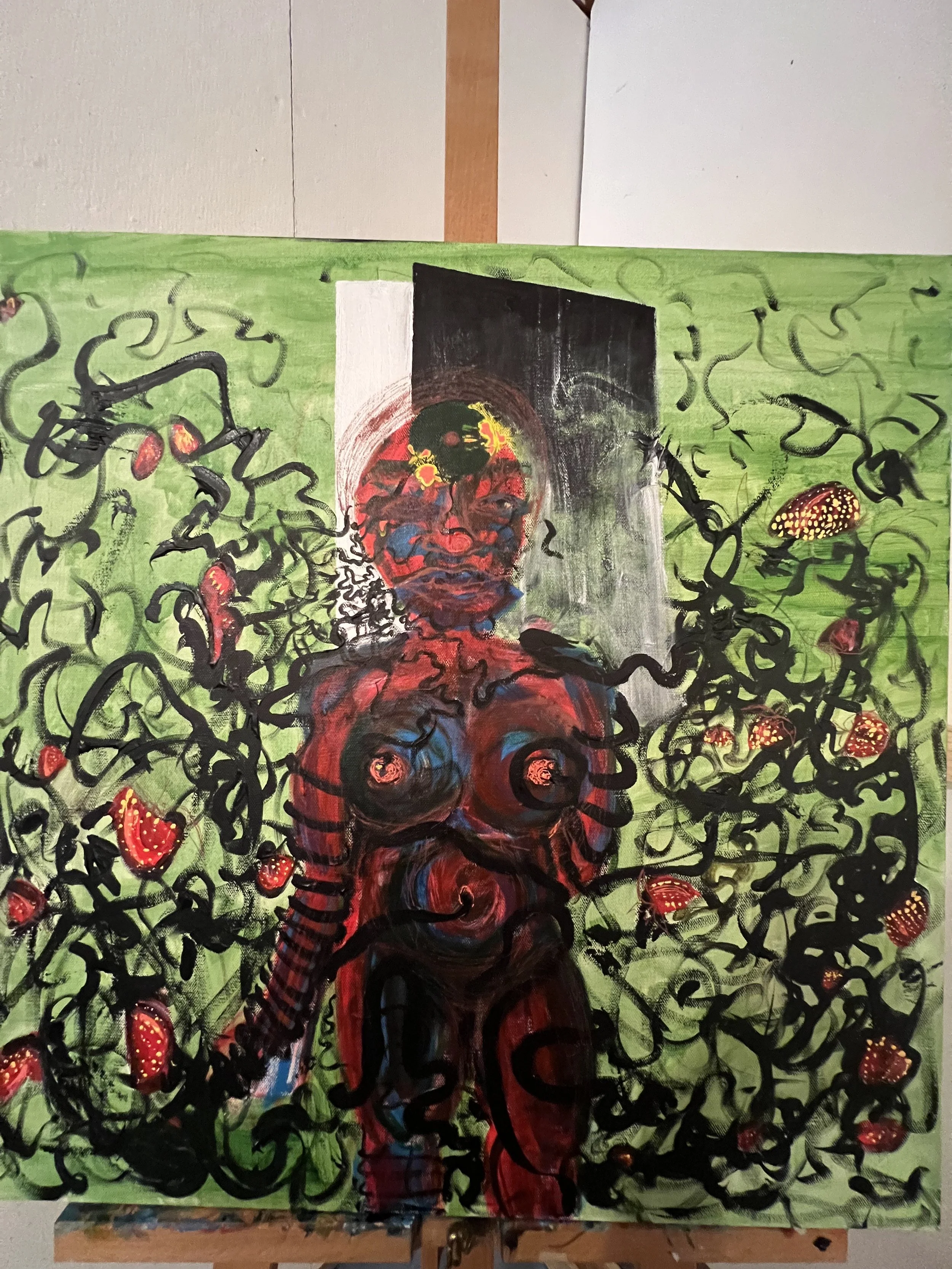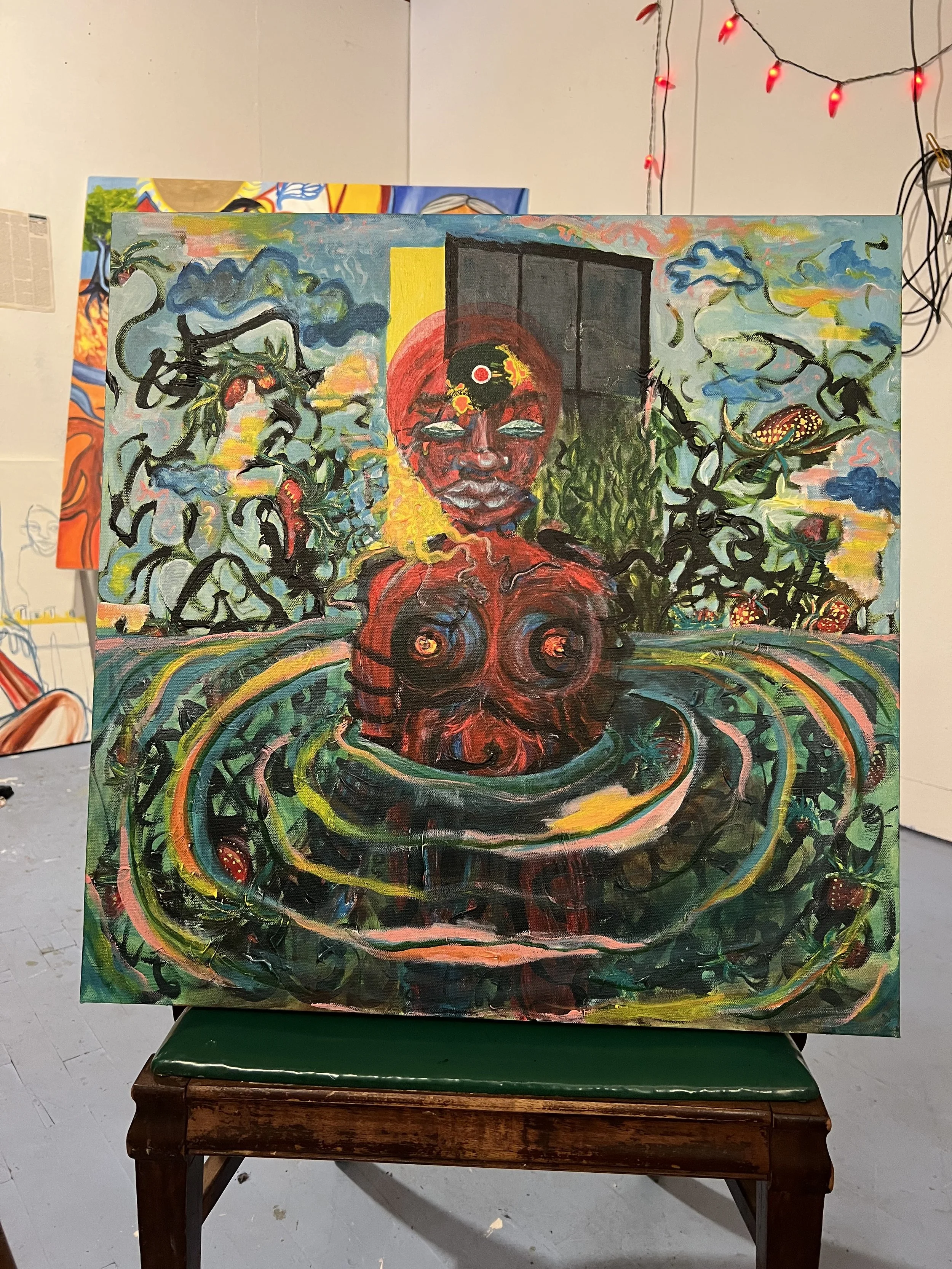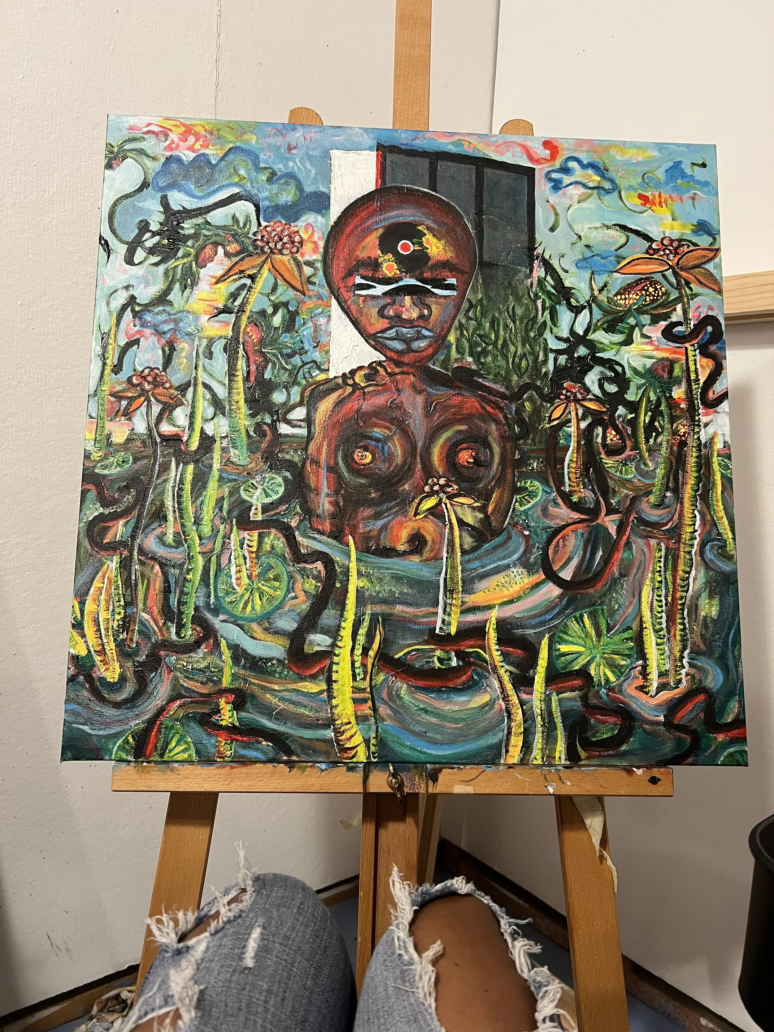 LALITA is a multimedia collage and painting, processing what it means to come from two mothers (my birth mother & my adoptive mother) who I had to detach from early on in my life.