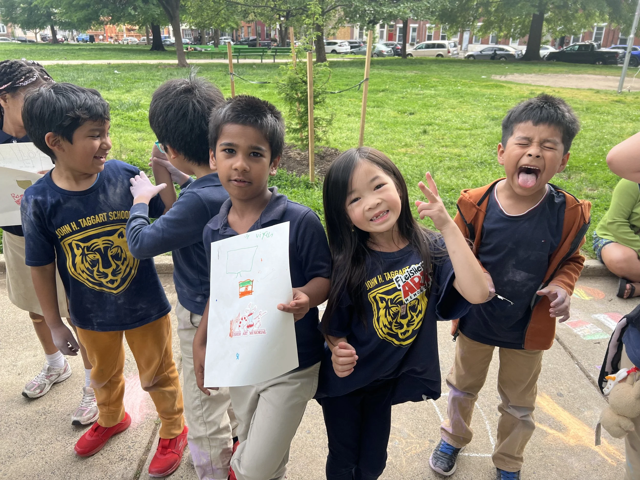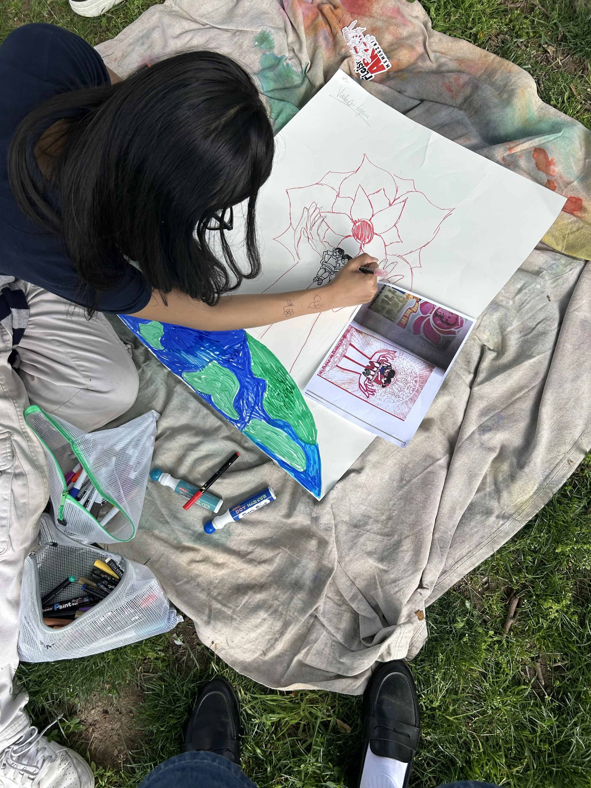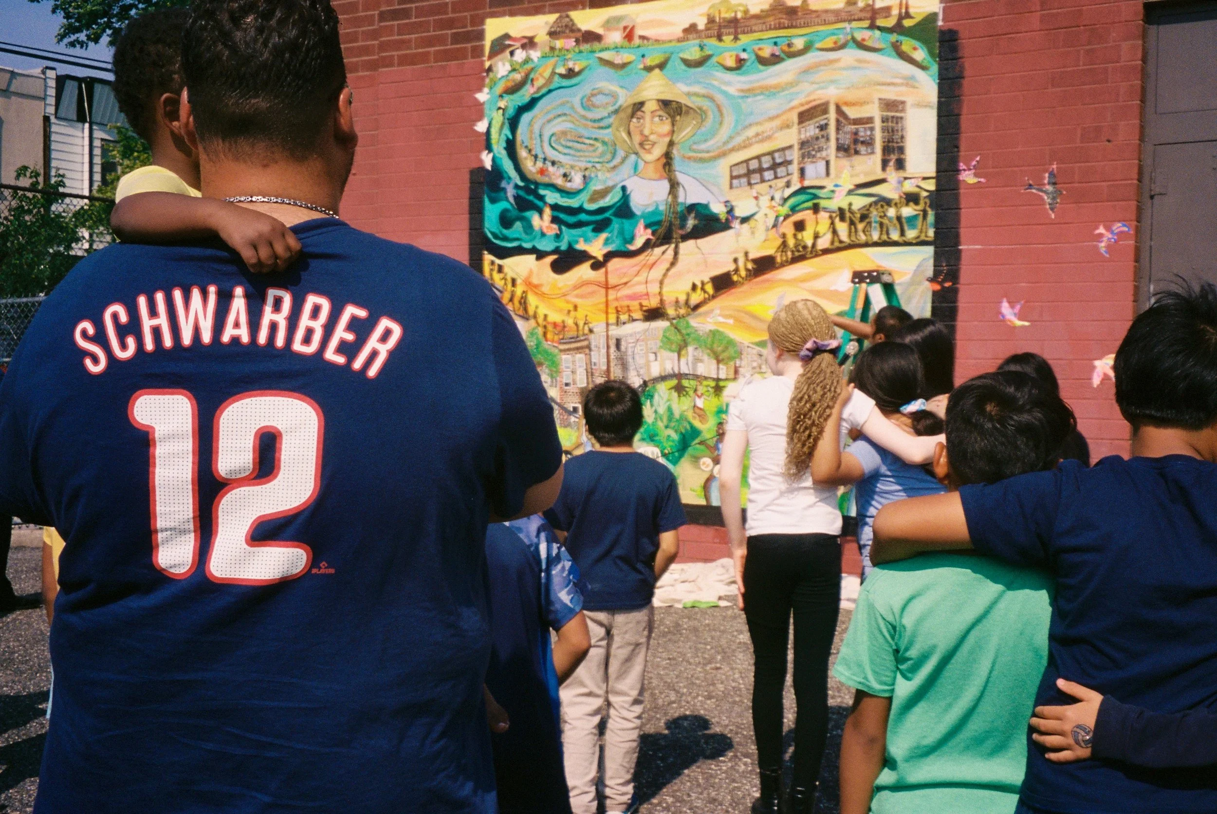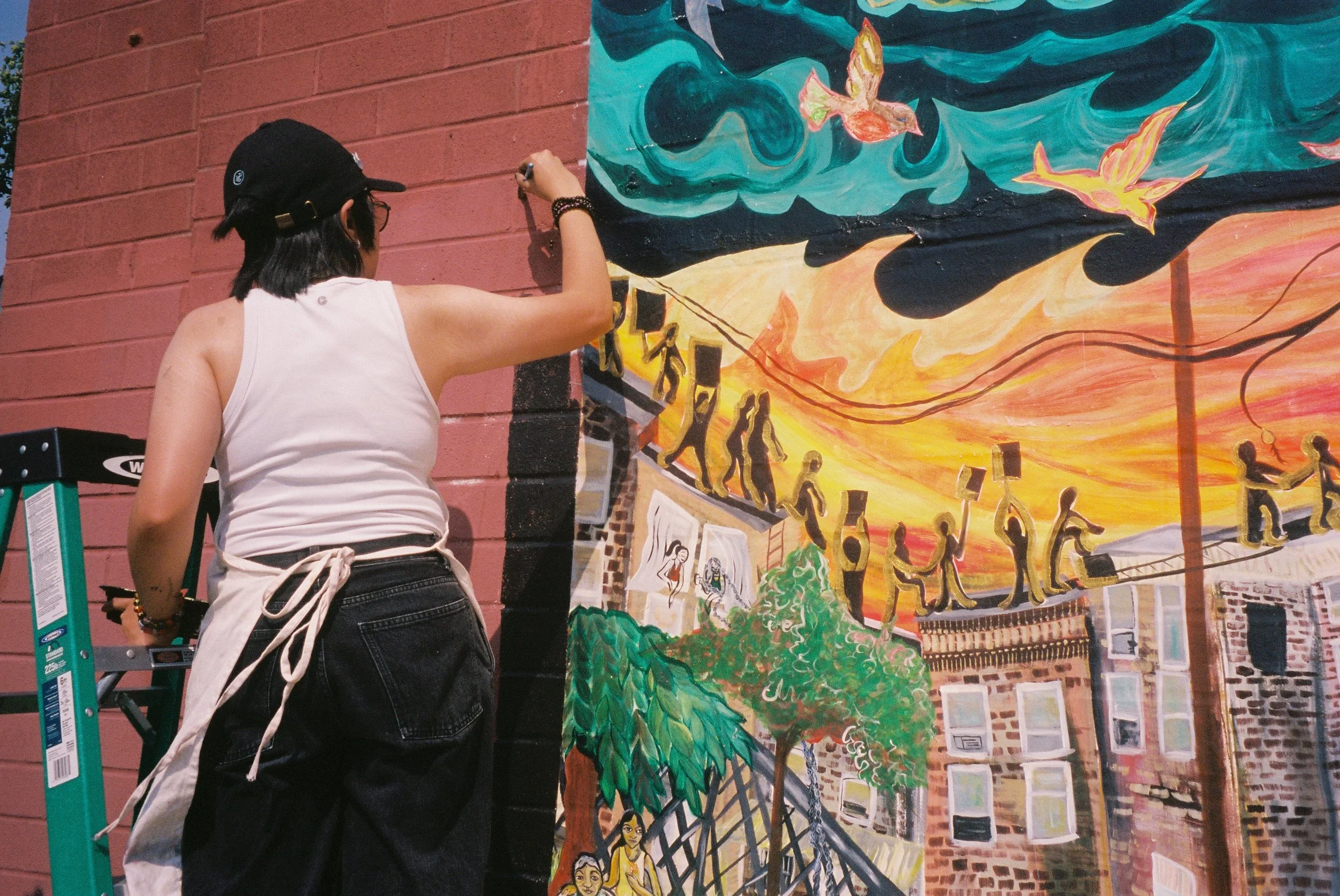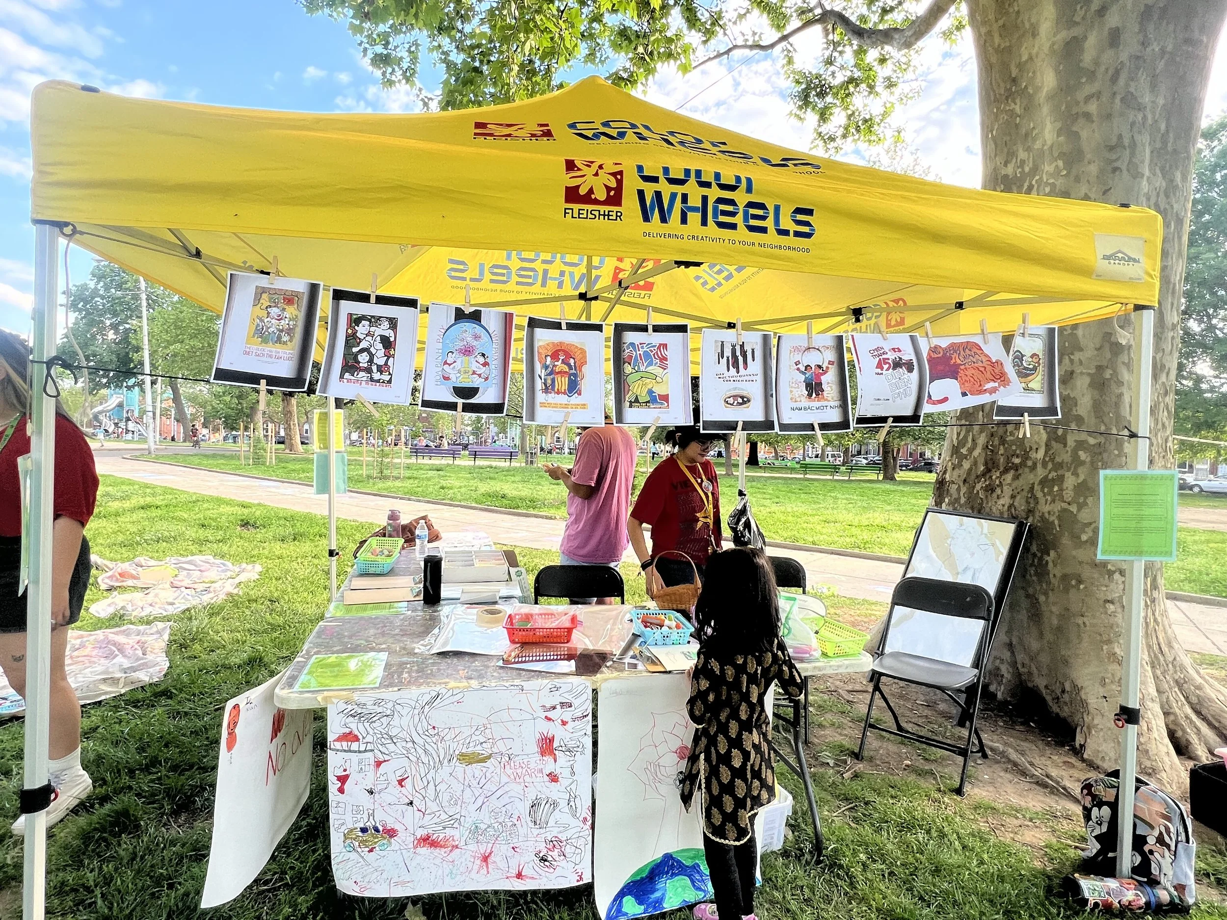 In Collaboration with the OST after school program of the Cambodian Association of Greater Philadelphia (CAGP), Fleisher Art Memorial, and Marigold Murals, Kate Welbes worked with students at CAGP to create TITLE. Paying tribute to the thousands of SouthEast Asian refugees who were displaced and brought to Philadelphia, we have created TITLE, a mural holding the symbols and stories of community care, collective resistance, rage, grief, joy, and resilience of the SouthEast Asian community living in Philly.